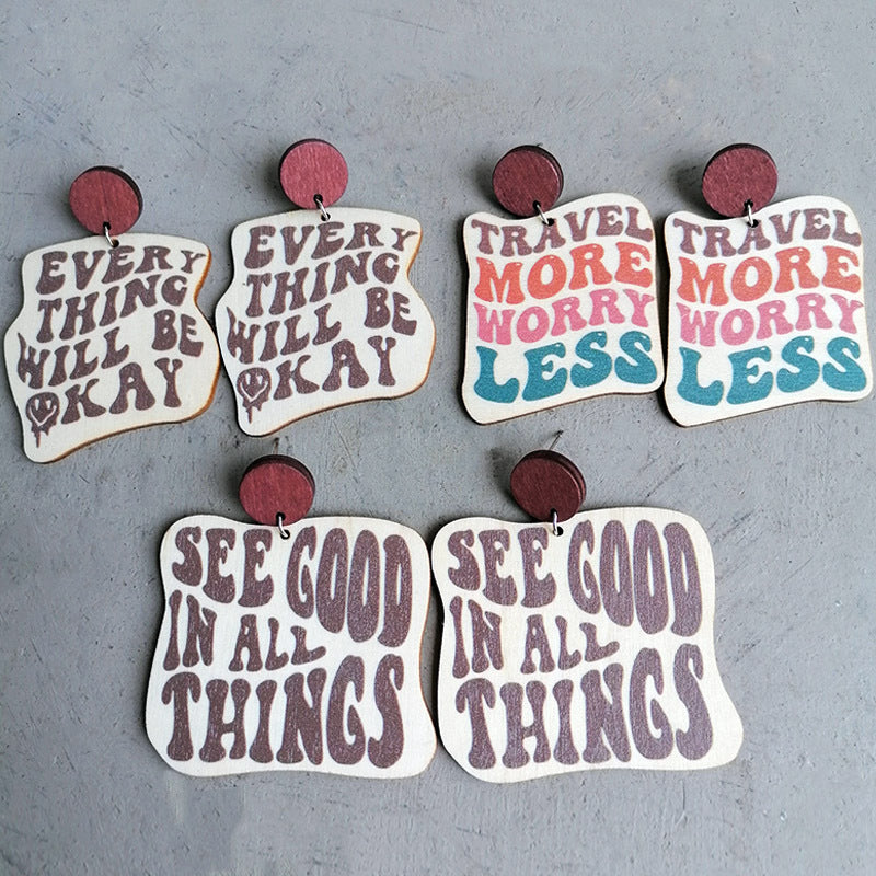 Wholesale Travel Optimistic Positive Spirit Wooden Earrings
