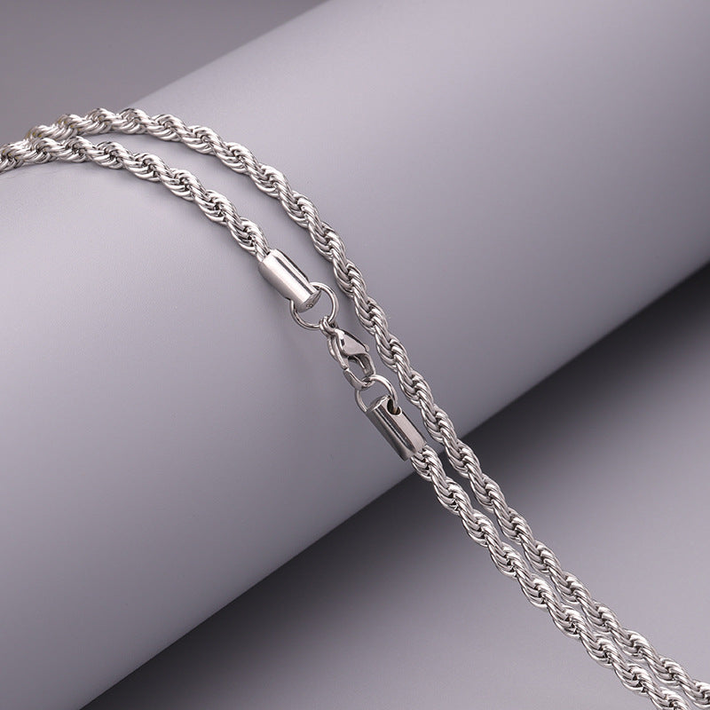 Wholesale Men's Fried Dough Twists Gold Hip Hop Titanium Steel Collar Necklaces
