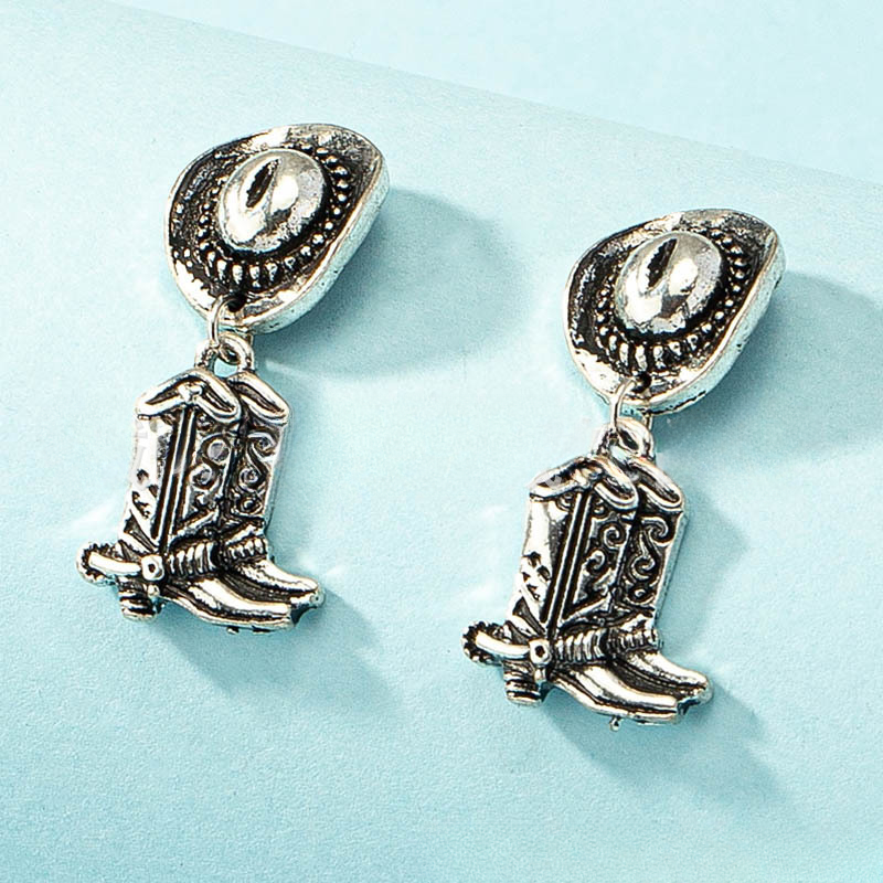 Wholesale Western Cowboy Hat Cowboy Boot Pendant Alloy Earrings