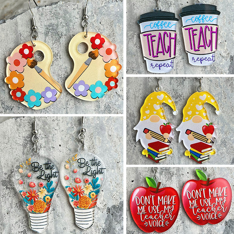 Wholesale 2pcs Teacher Gift Coffee Cup Apple Acrylic Earrings