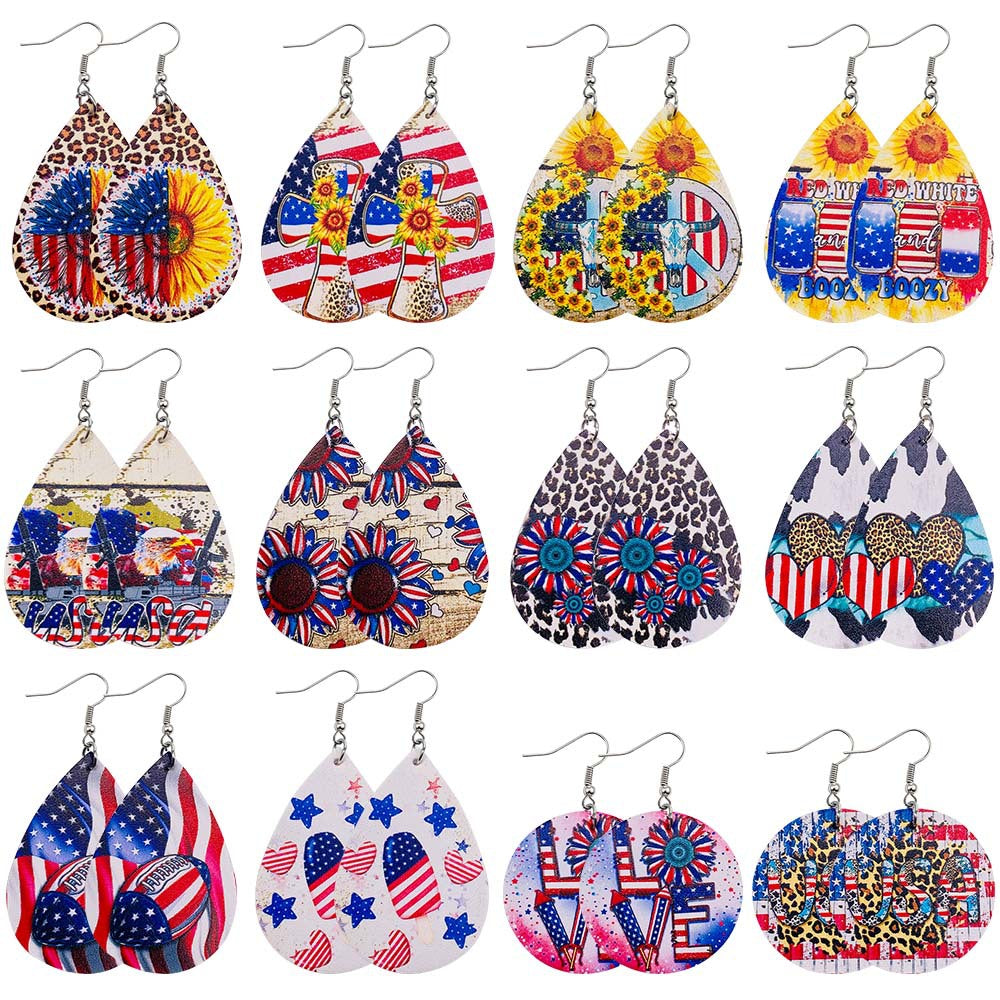 Wholesale 2pairs/pack Independence Day Flag Parade Feather Shiny Leather Mesh Earrings