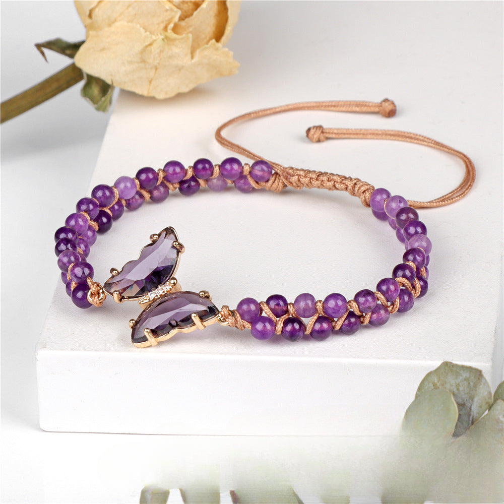 Wholesale Natural Stone Pure Handwoven Amethyst Butterfly Bracelet