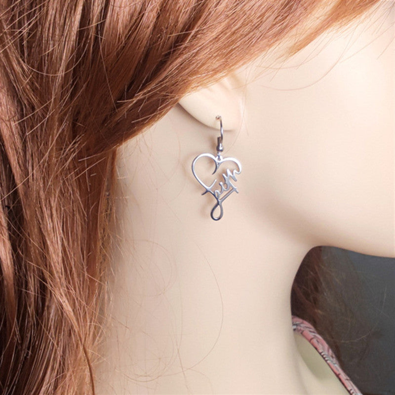 Wholesale Titanium Steel Alphabet Cross Heart Earrings