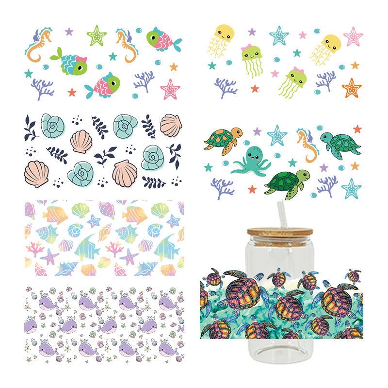 Wholesale Blue Ocean Series 16oz Cup UV DTF Wraps