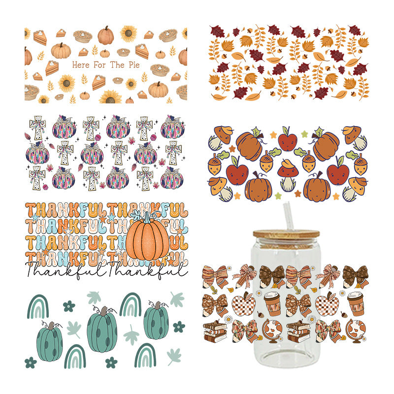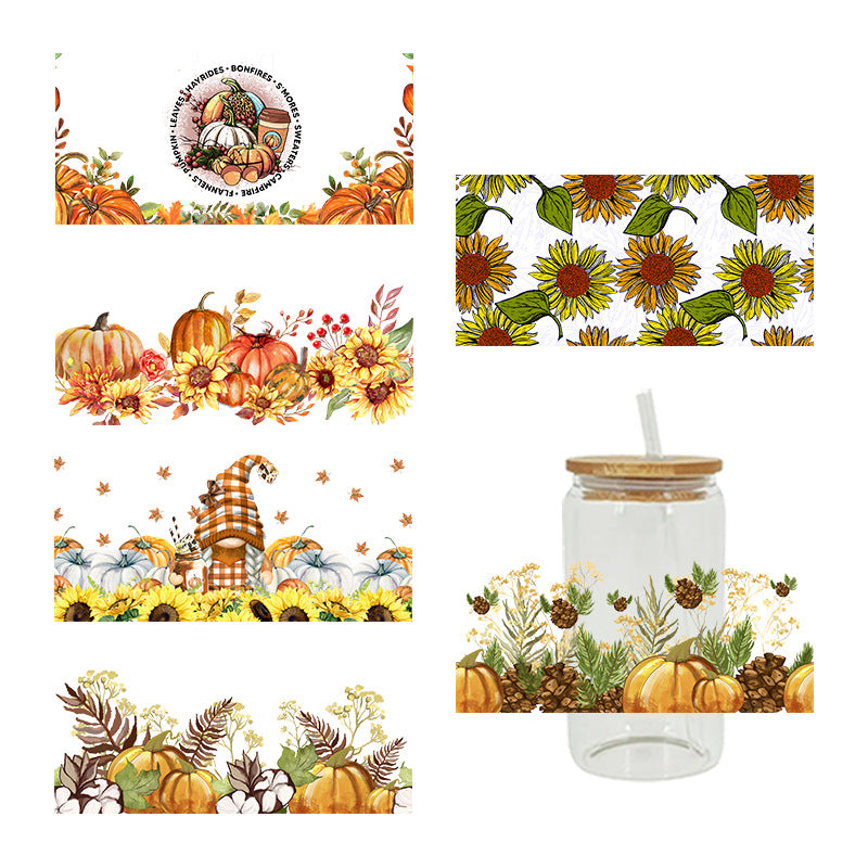 Wholesale Pumpkin Flower Series 16oz Cup UV DTF Wraps