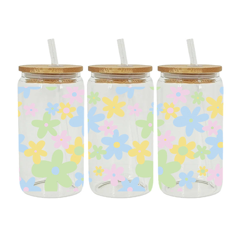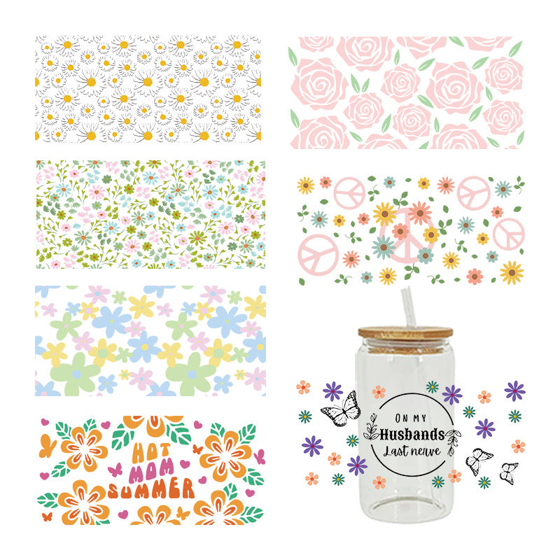 Wholesale colorful flowers 16oz Cup UV DTF Wraps