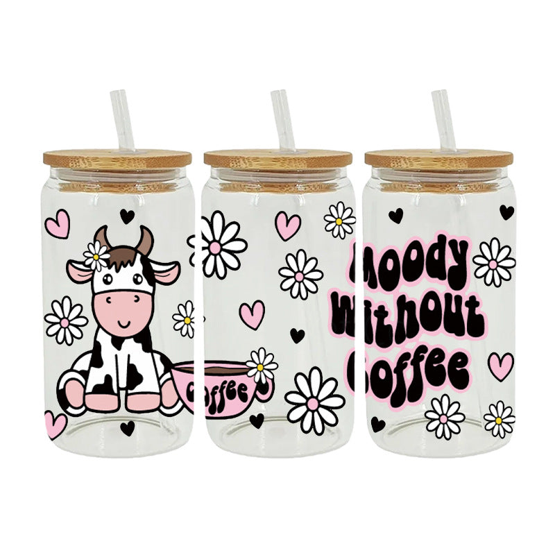 Wholesale Black and white cartoon calf 16oz Cup UV DTF Wraps