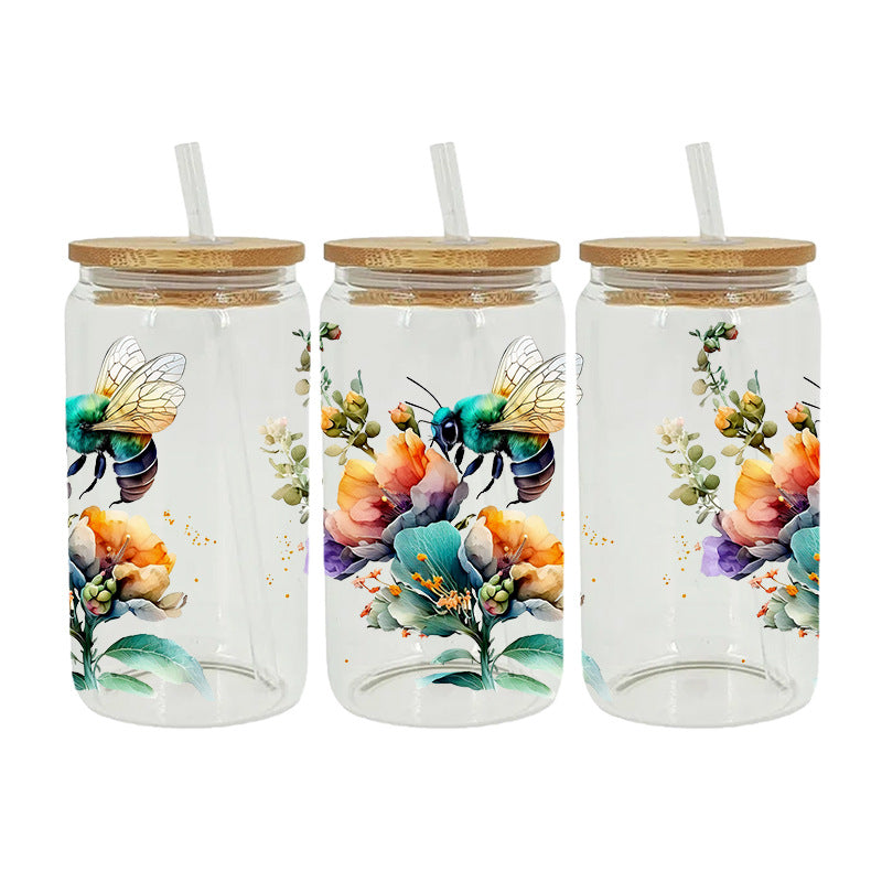 Wholesale Colorful Butterfly Flowers 16oz Cup UV DTF Wraps
