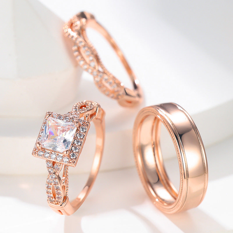 Wholesale Copper Rose Gold Diamond Ring Set of Three Pieces