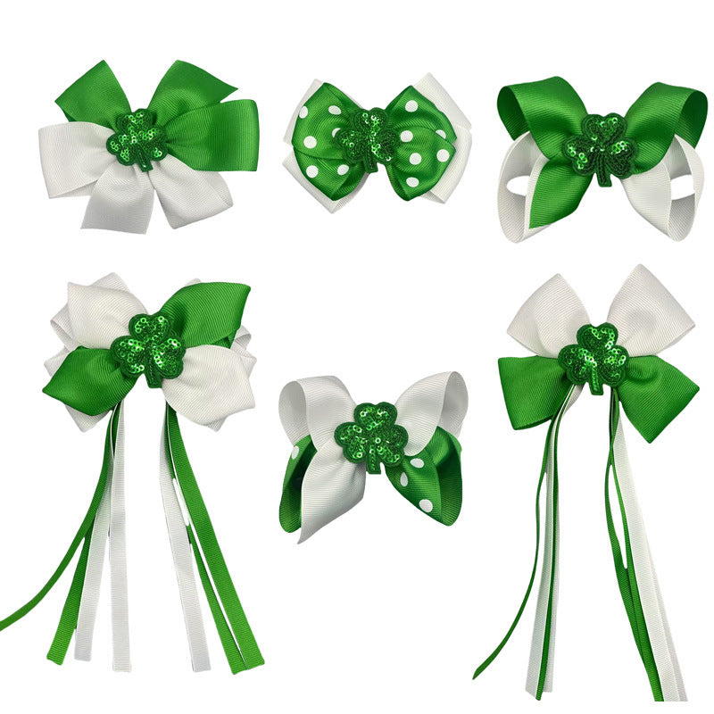 Wholesale St. Patrick' s Day Green Clover Bow Hair Clip