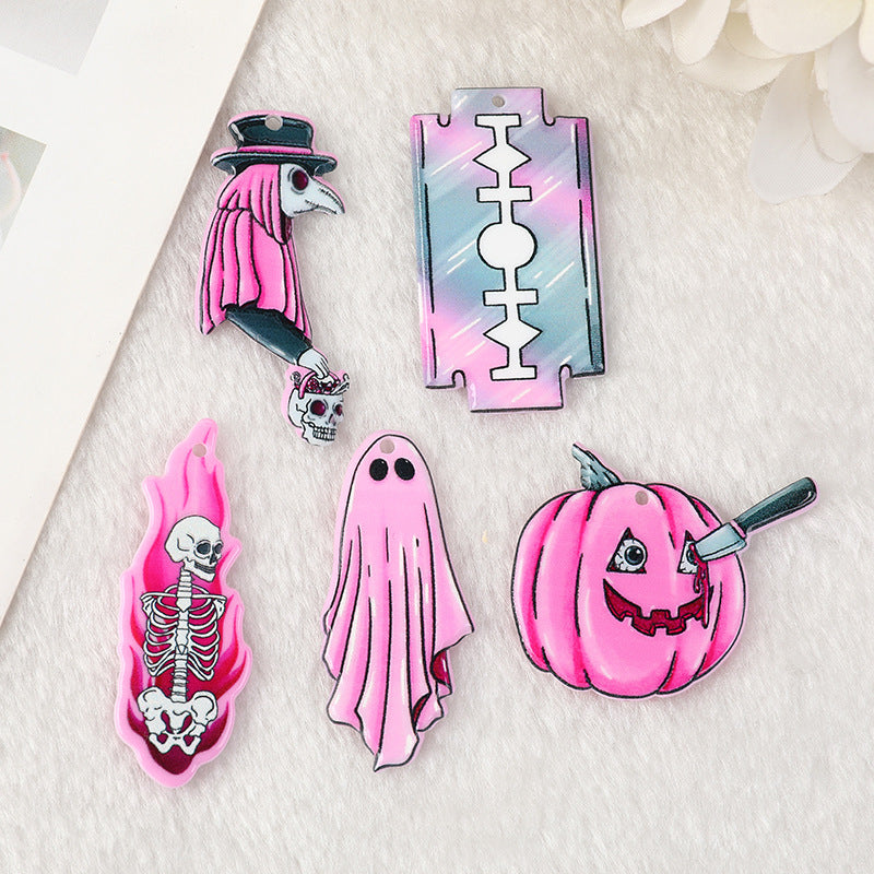 Wholesale 10pcs Acrylic Halloween Pumpkin Skeleton Man Ghost DIY Earrings Keychain Accessories