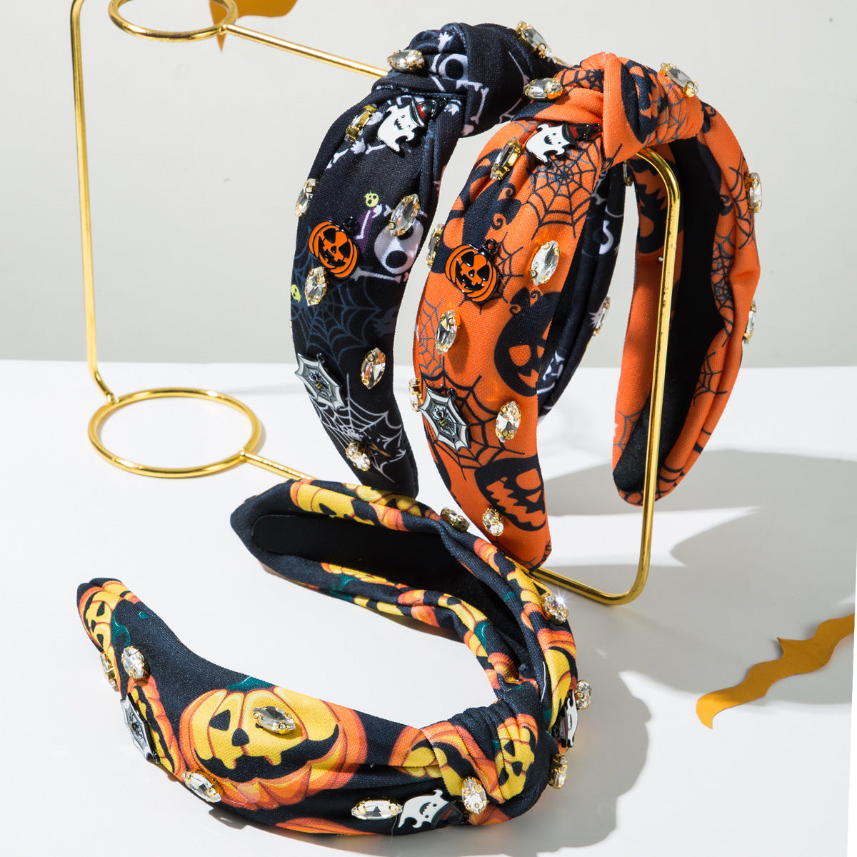 Wholesale New Halloween Print Spider Web Fabric Hair Ornament with Diamond Sticky Pumpkin Demon Headband