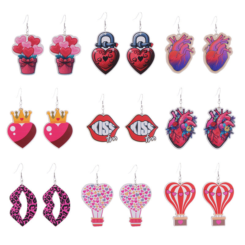 Wholesale Valentine's Day Pink Series Love Hot Air Balloon Dwarf Wooden Earrings