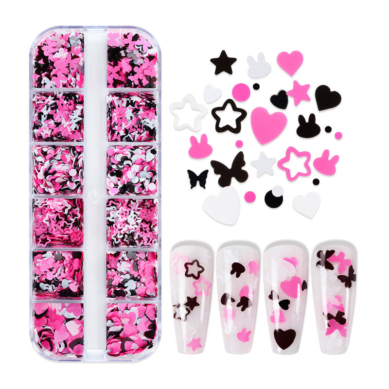 Wholesale Black and Pink Rabbit Love Circle Nail Stickers Pet Sequins