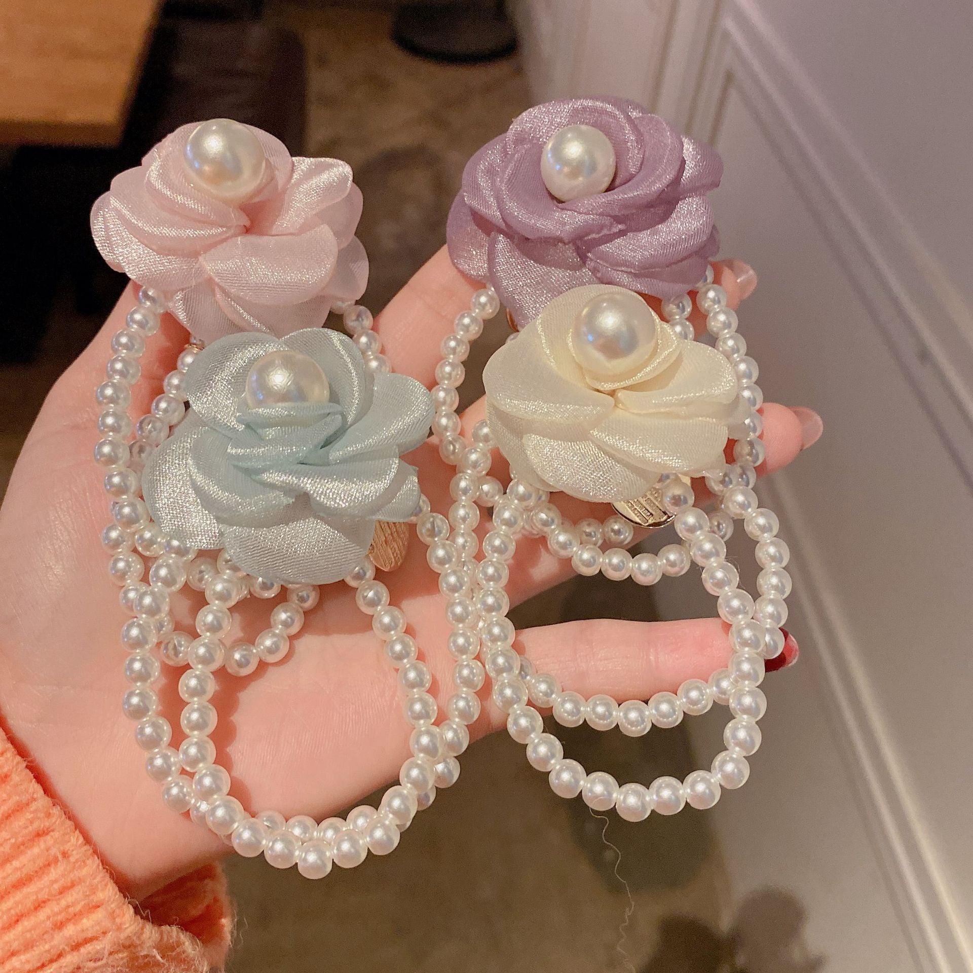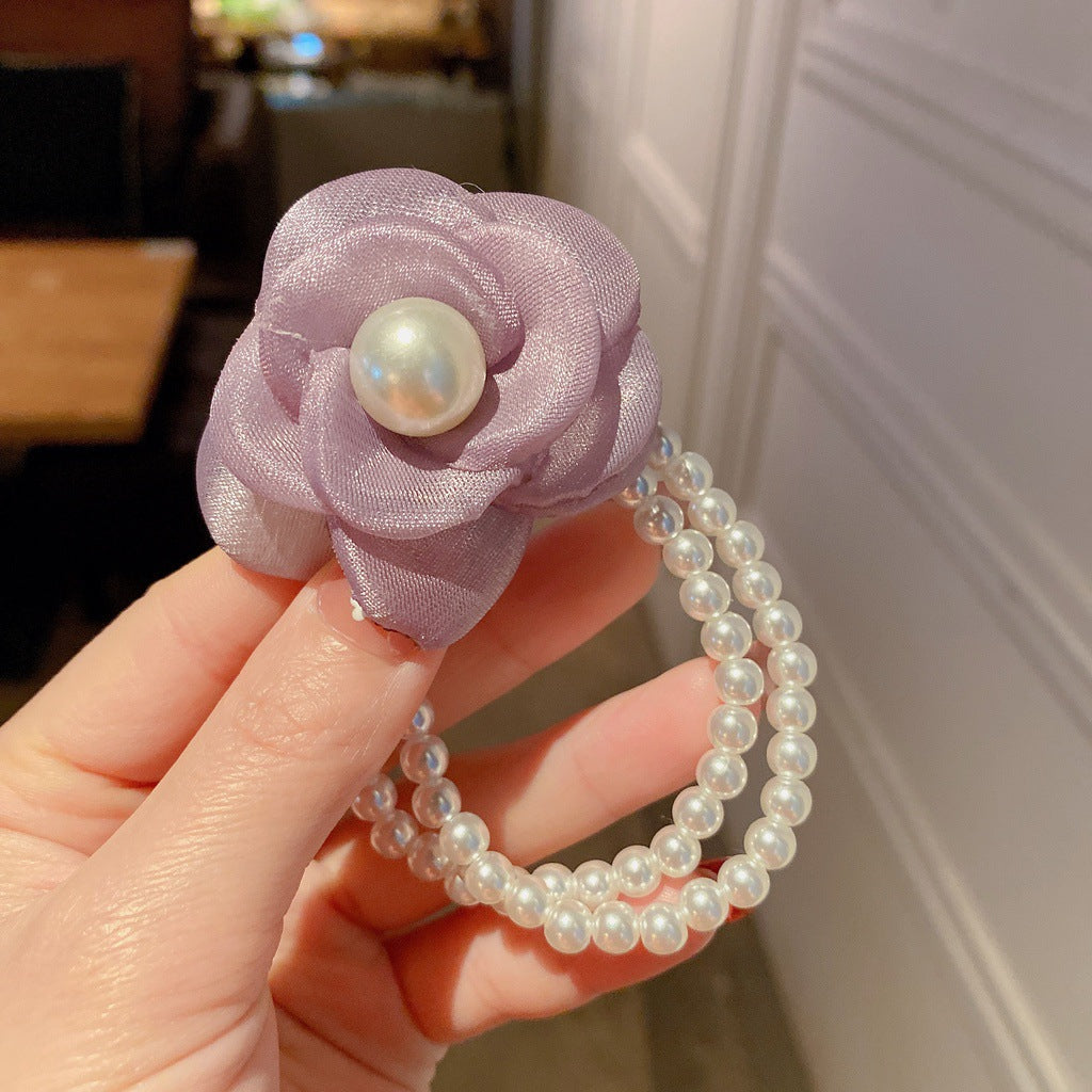 Wholesale Flower Artificial Pearl Cloth Hair Scrunchies