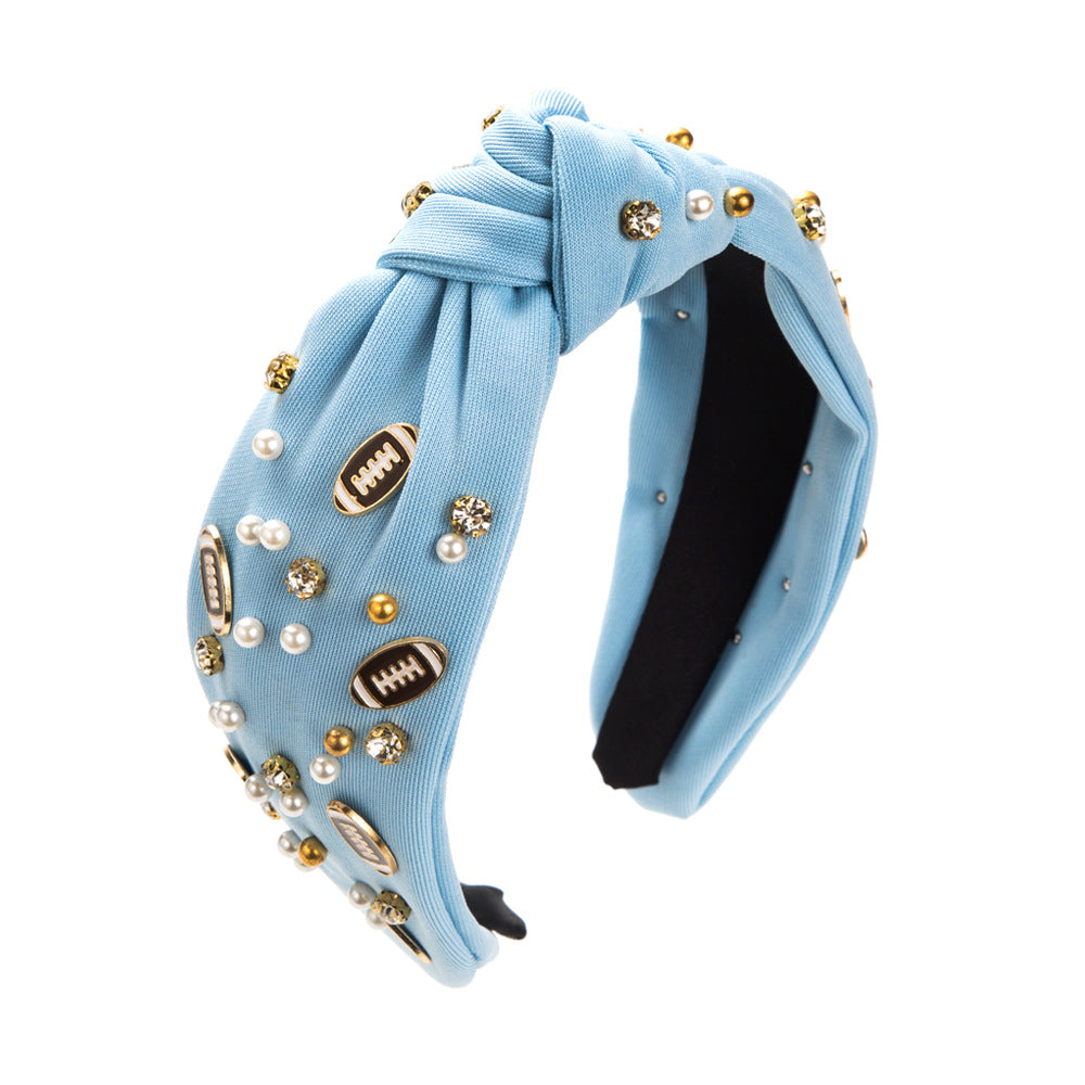 Wholesale Rugby Decoration Wide Edge Pearl Fabric Headband