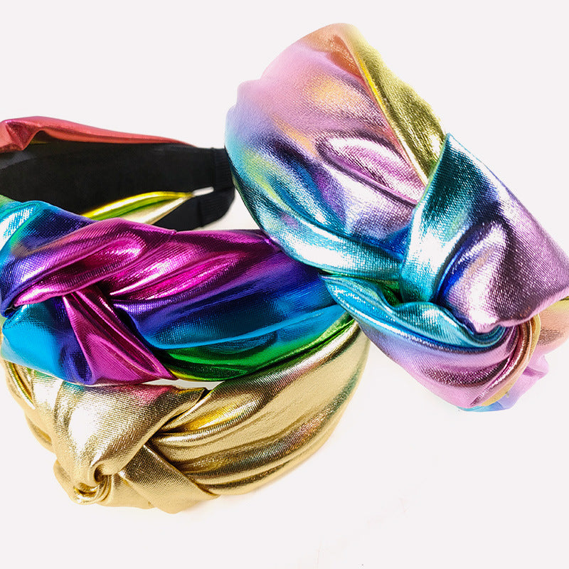 Wholesale Simple Wide Edge Colorful Shiny Leather Tied Hair Hoops