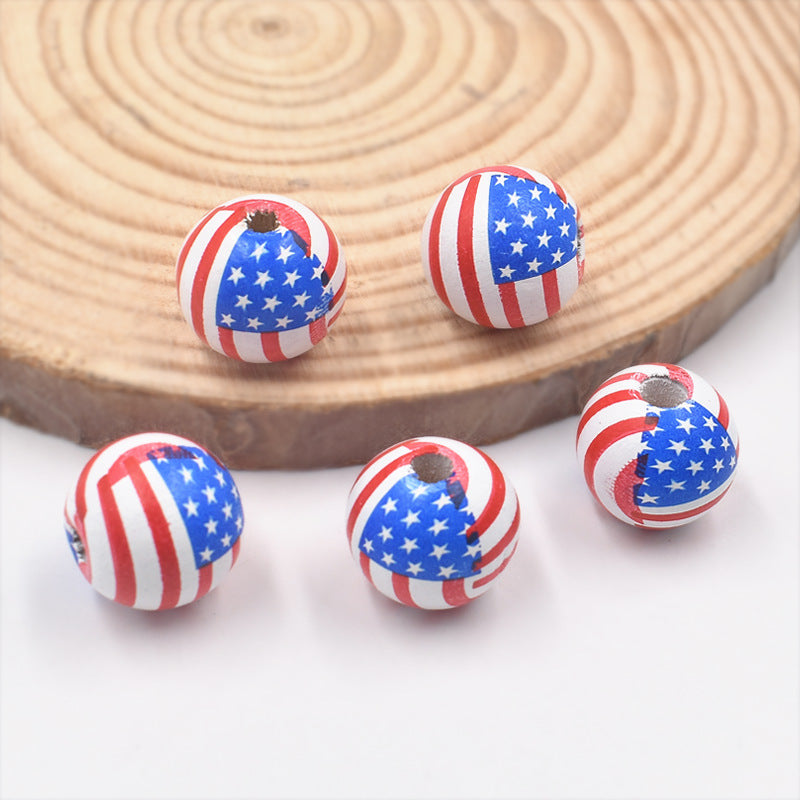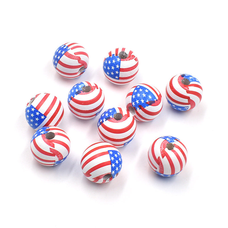Wholesale 10pcs Independence Day Stripes Colorful DIY Wooden Beads