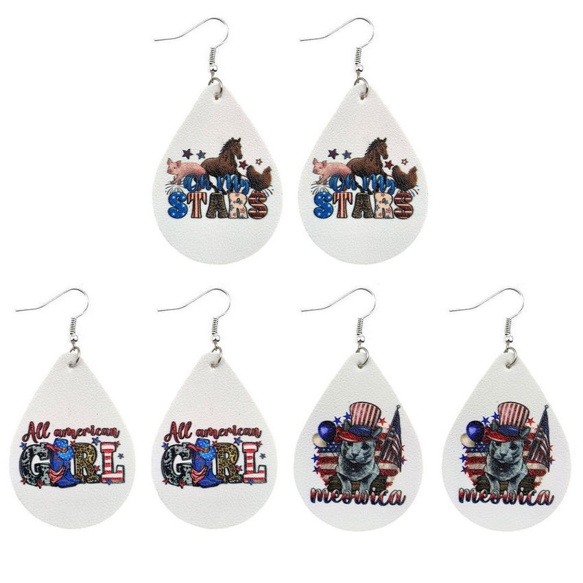 Wholesale 2pairs/pack Independence Day Flag Parade Feather Shiny Leather Mesh Earrings