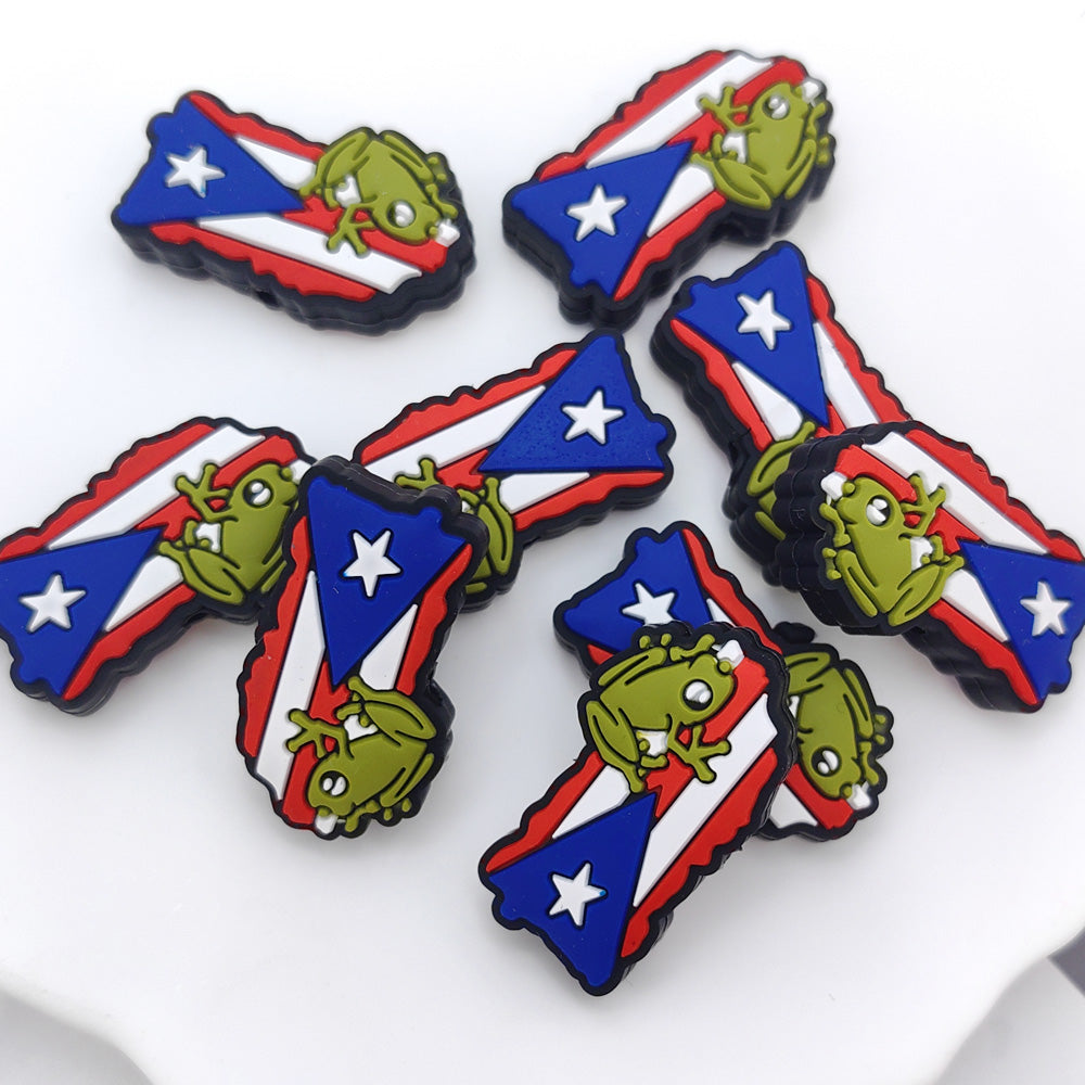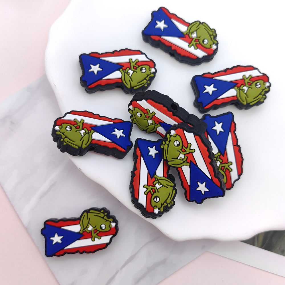 Wholesale 10pcs Independence Day Cartoon Frog Silicone Beads