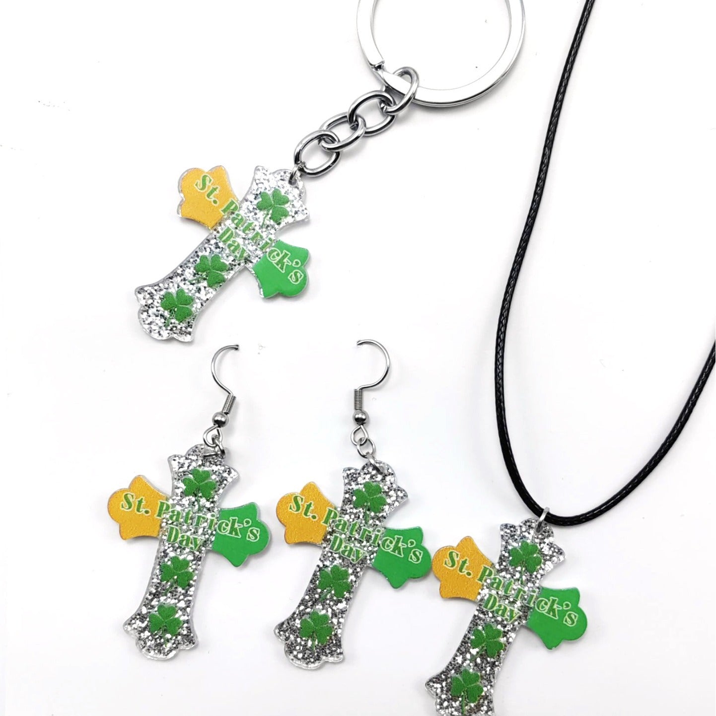 Wholesale St. Patrick' s Day Green Cross Acrylic Earrings Necklace