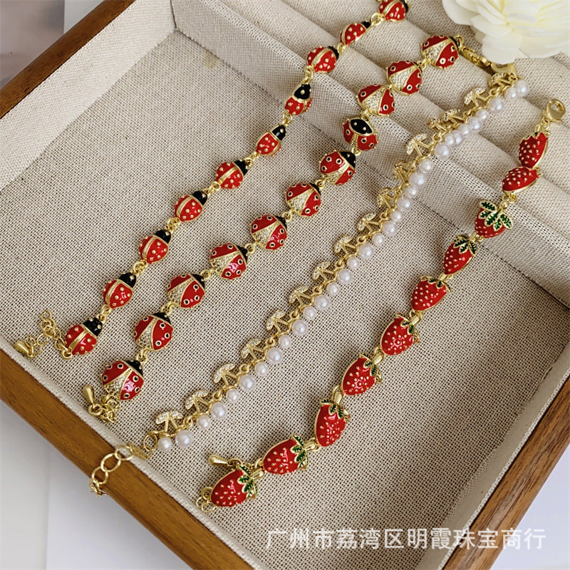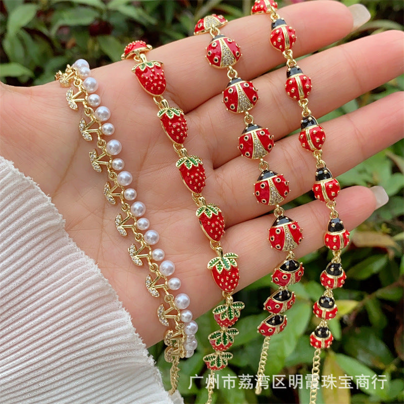 Wholesale Copper Plated 18k Gold Cute Style Cherry Ladybug Bracelet