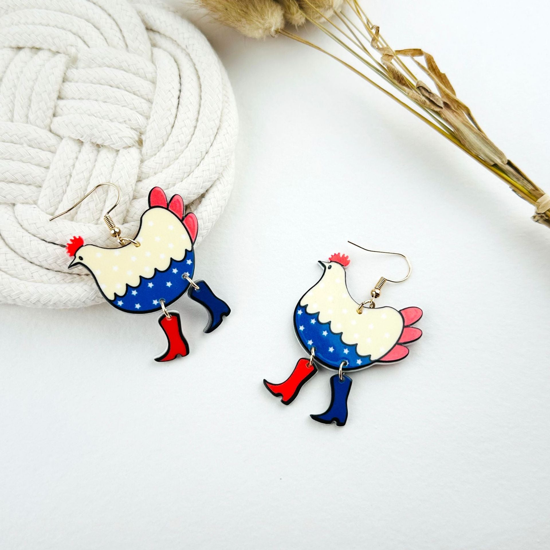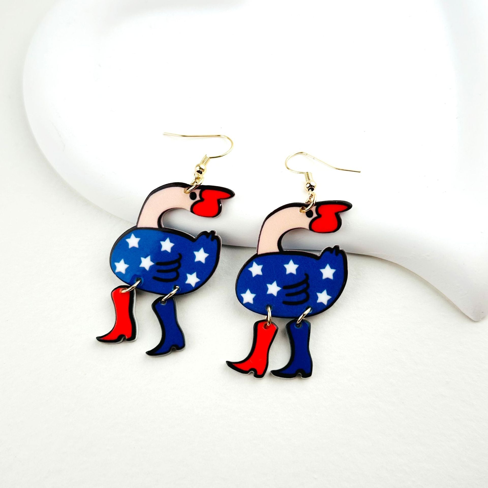 Wholesale Independence Day Double-sided Printing Flag Chicken Goose Acrylic Earrings