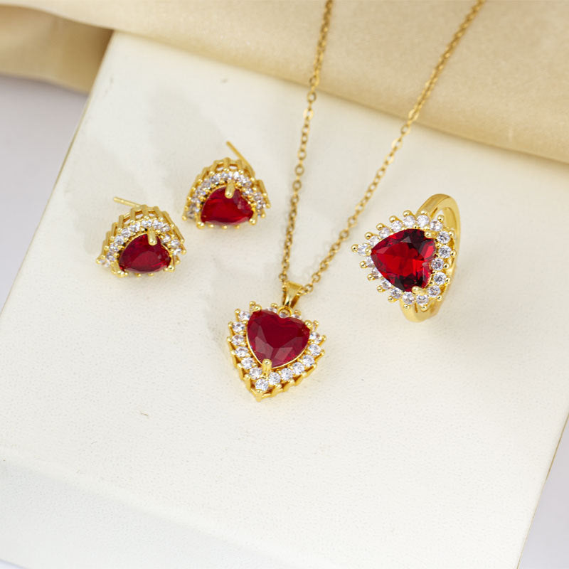 Wholesale Valentine' s Day Red heart set with diamonds Titanium Steel Necklace