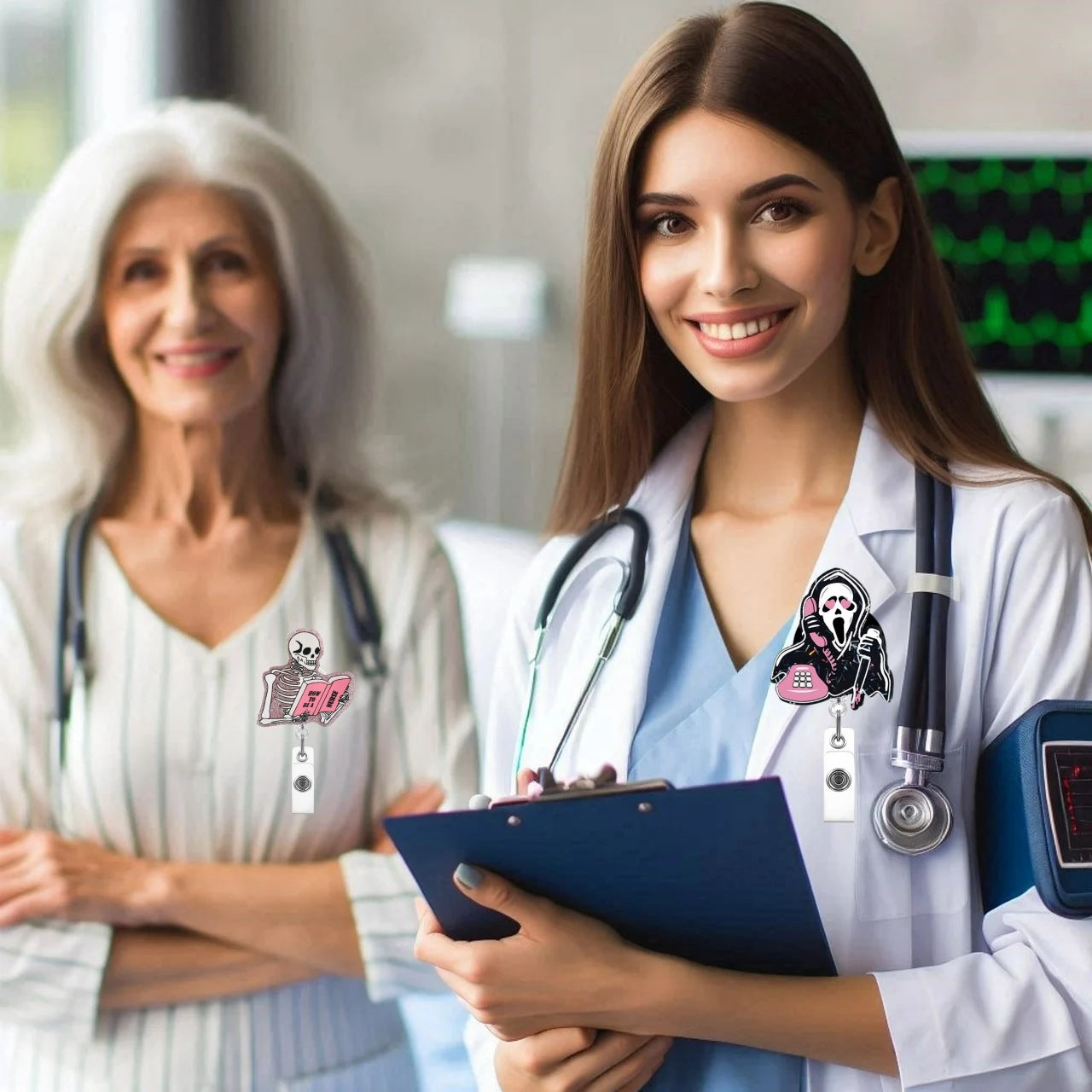 Wholesale Blackened Skeleton Medical Easy Pull Buckle Badge Reels