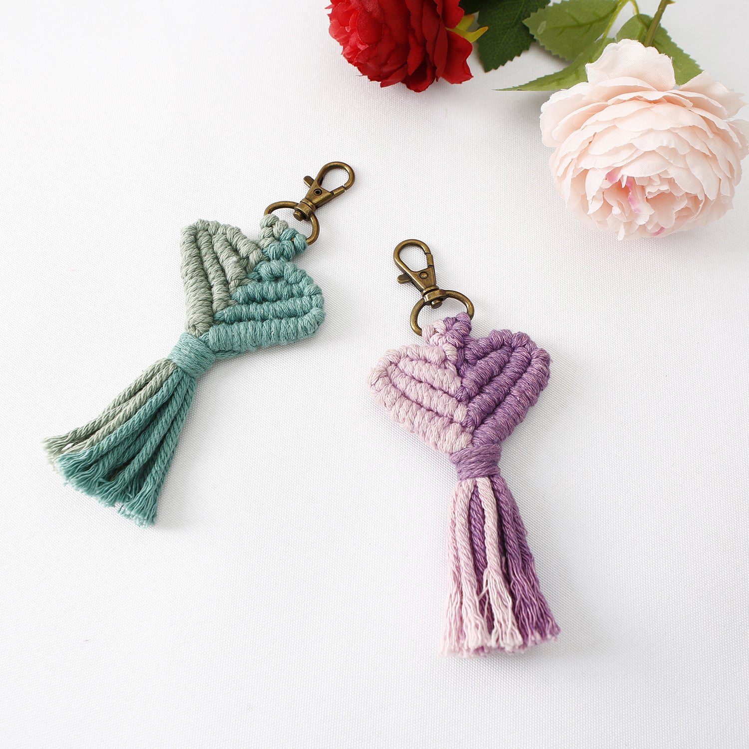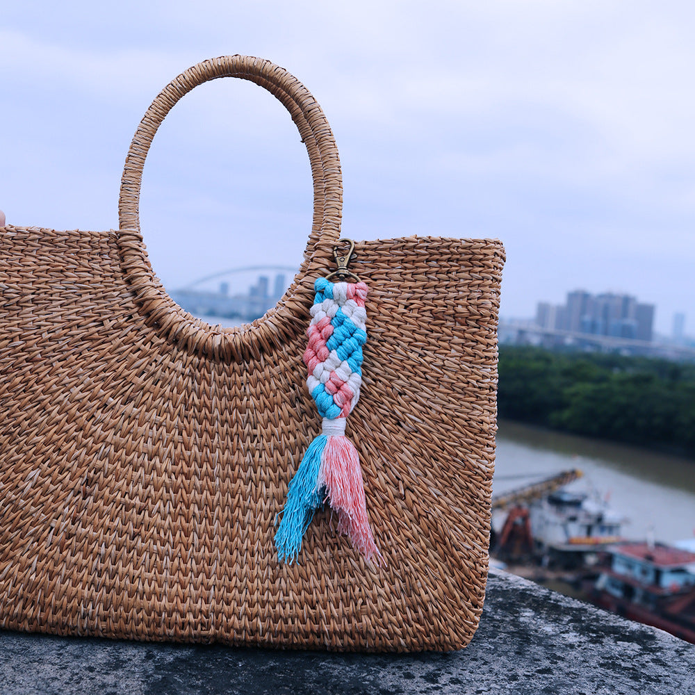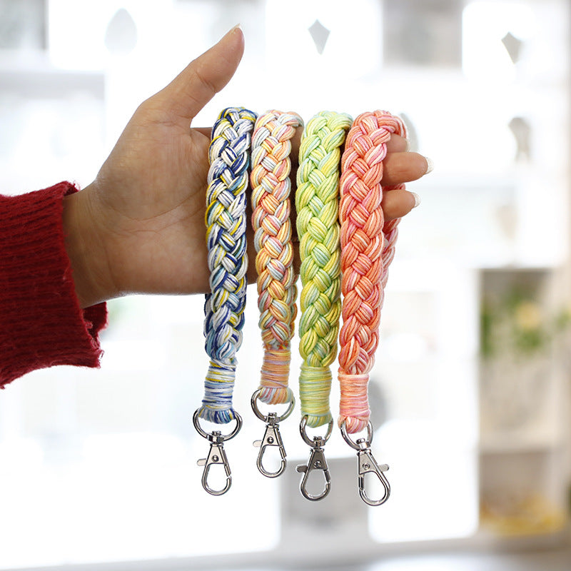Wholesale Handwoven Flower Daisy Cotton Rope Lanyard Keychain