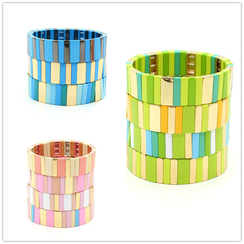 Wholesale Alloy Enamel Geometric Rectangular Rainbow Bracelets