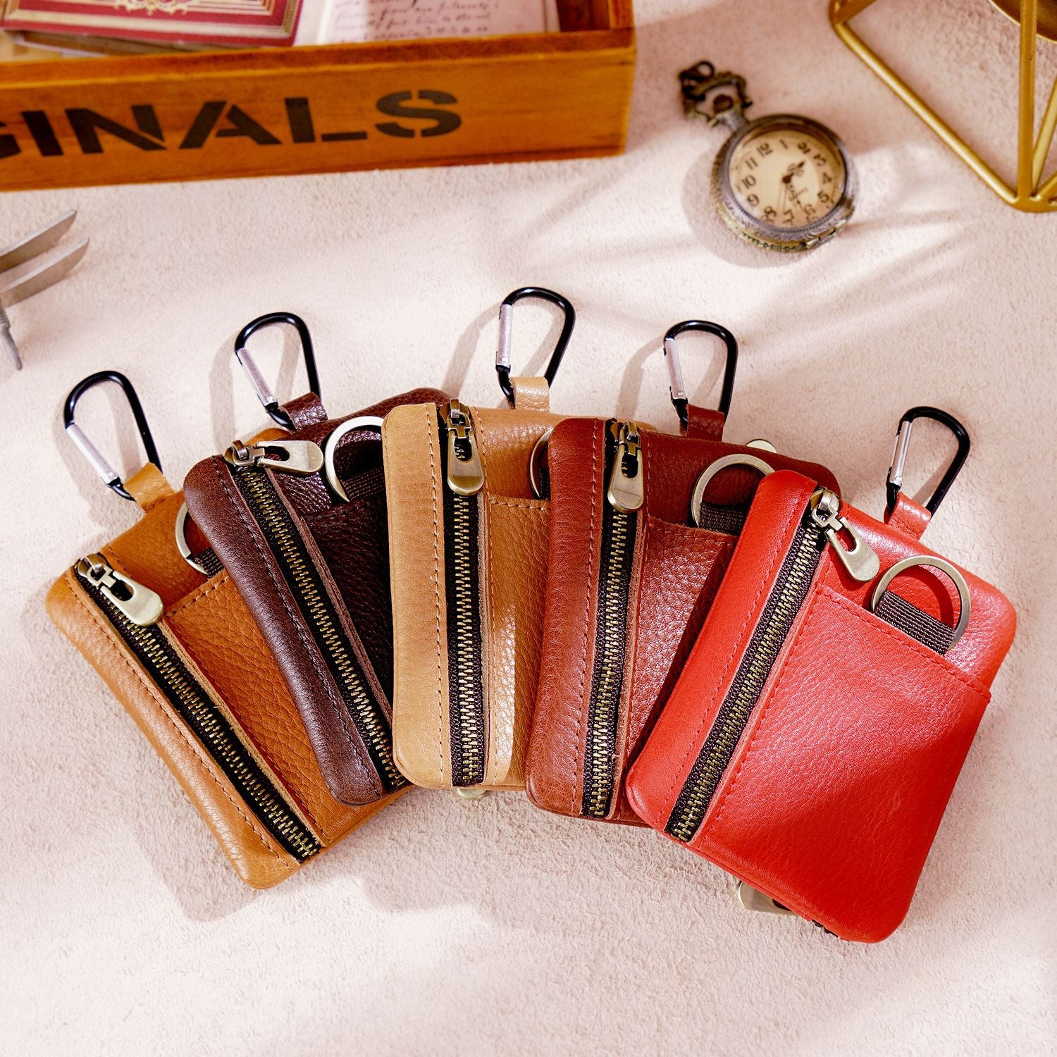 Wholesale Mini Zipper Cowhide Coin Purse Leather Keychain