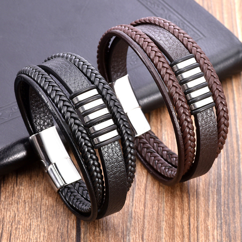 Wholesale Titanium Steel Woven Leather Rope Bracelets