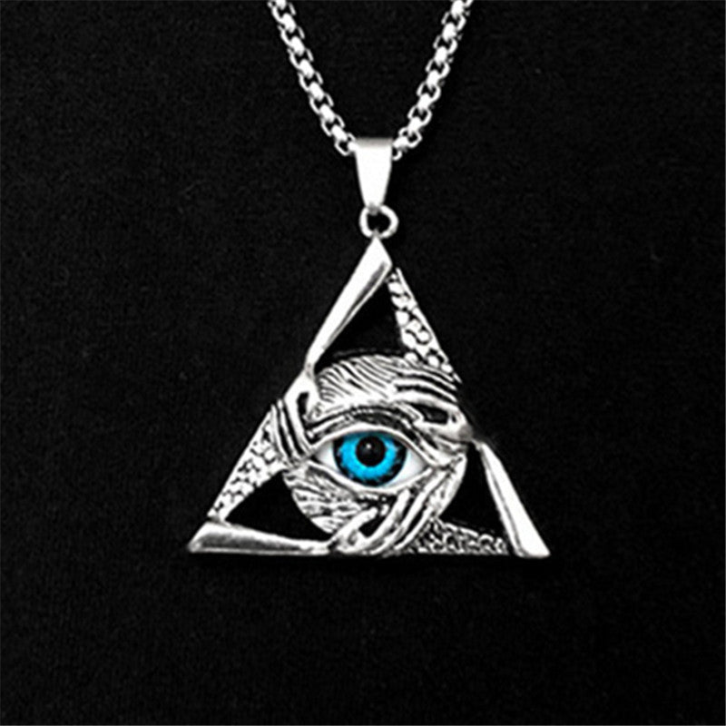Wholesale Retro triangle evil eye pendant hip-hop sweater chain