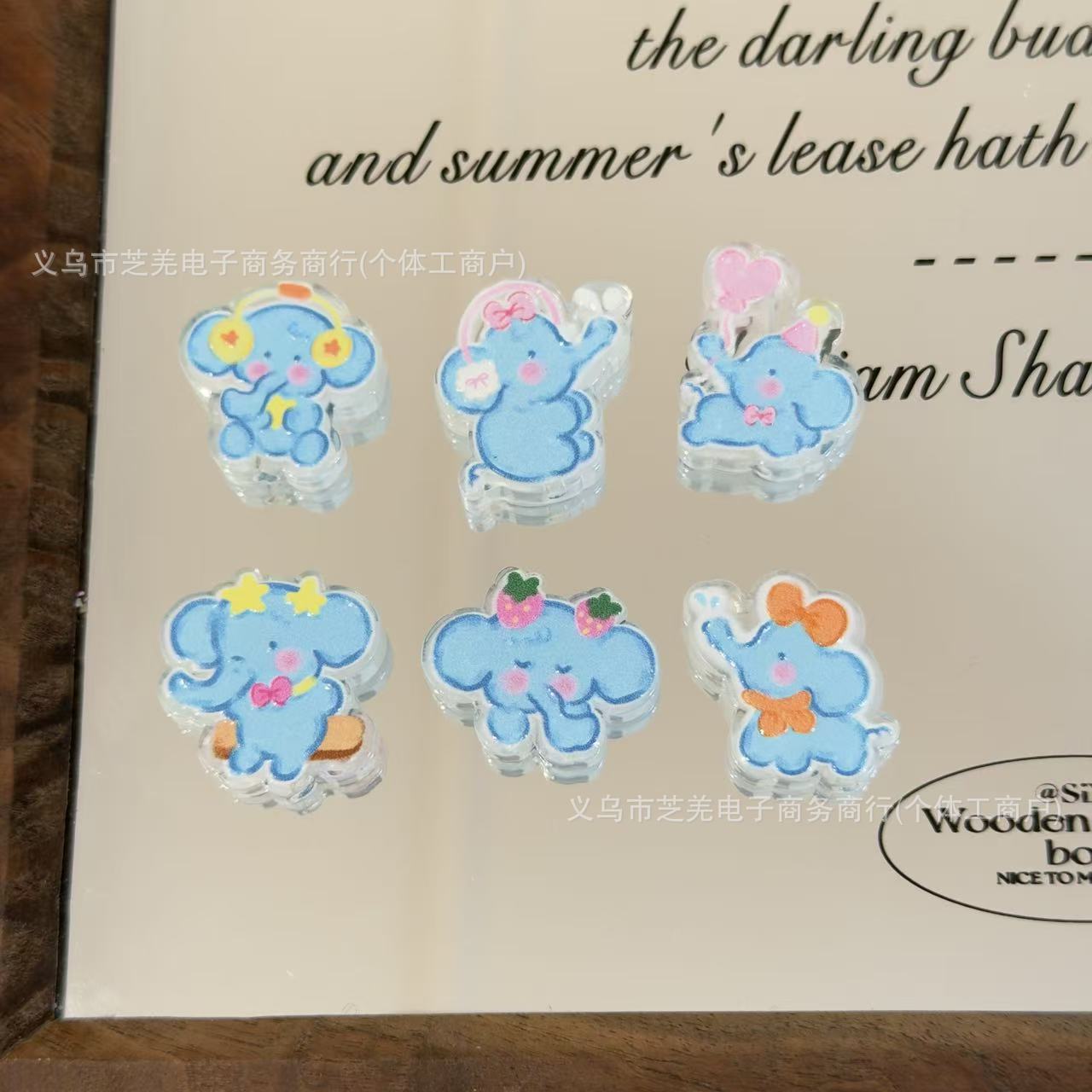 Wholesale 10pcs cartoon powder blusher elephant relief board acrylic beads
