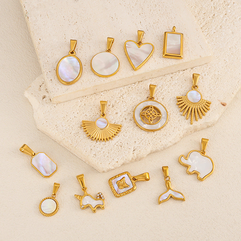 Wholesale 10pcs Love tailed unicorn elephant fan-shaped white shell mother pendant
