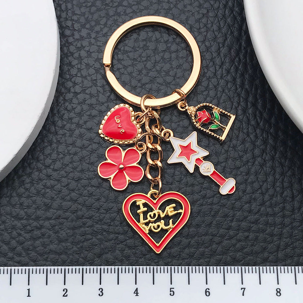 Wholesale Red Magic Wand Love Rose Cherry Blossom Metal Keychain