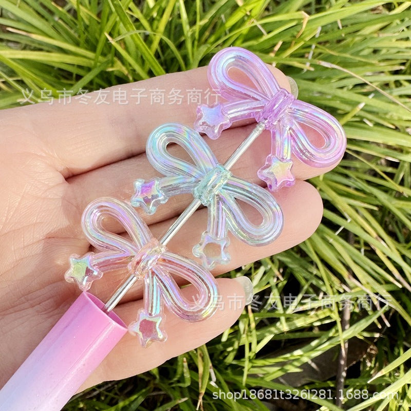 Wholesale 50pcs 34mm transparent rainbow color plated star bow acrylic beads