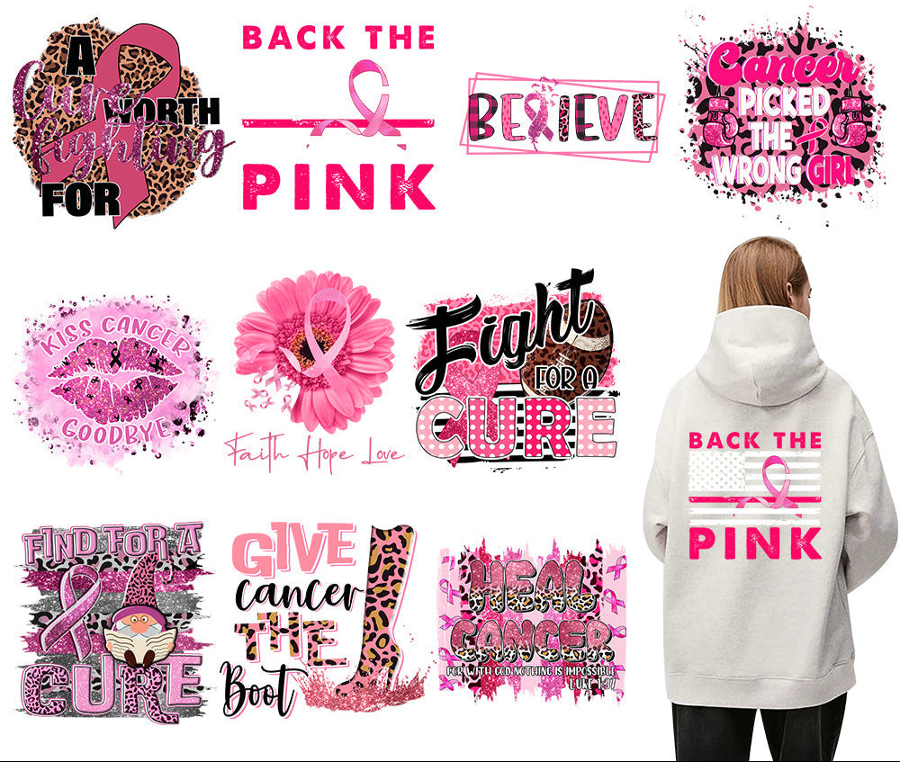 Wholesale Pink ribbon letter lip pattern UV DTF Ready to Press Transfers Wraps
