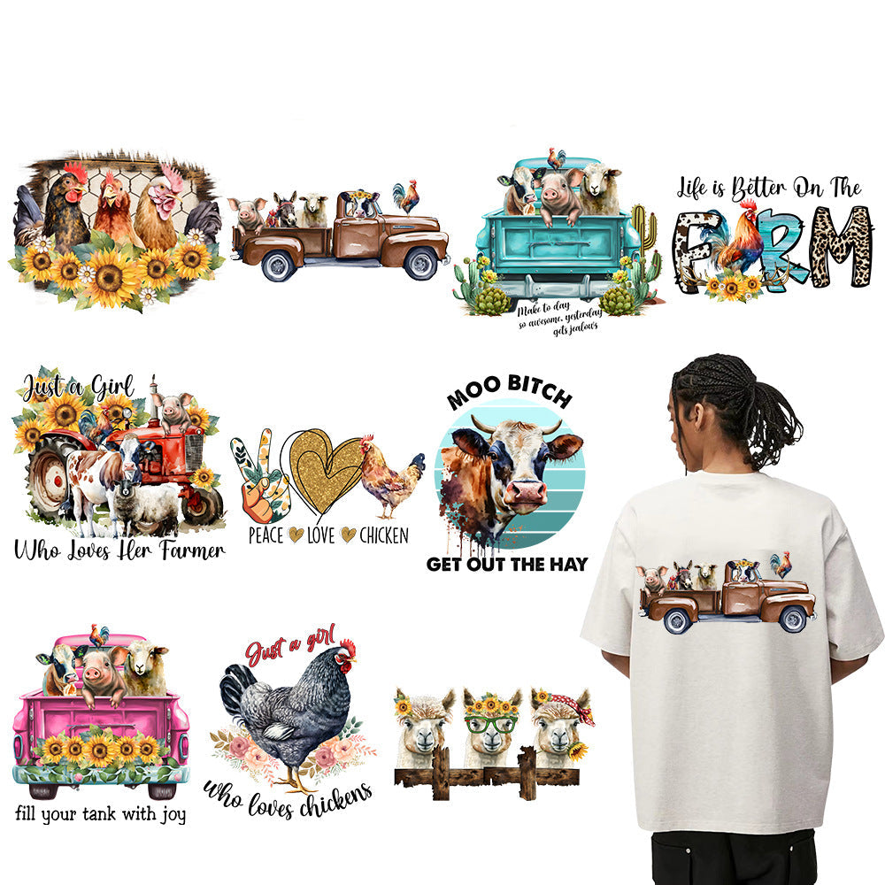 Wholesale Farm animals chickens pigs flowers UV DTF Ready to Press Transfers Wraps