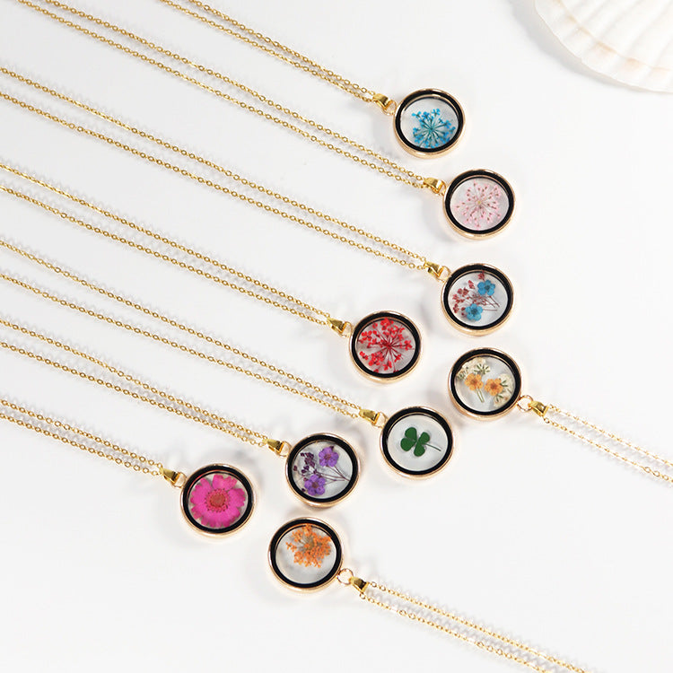Wholesale 10pcs Four-leaf Clover Daisy Baby's Breath Pendant Necklace