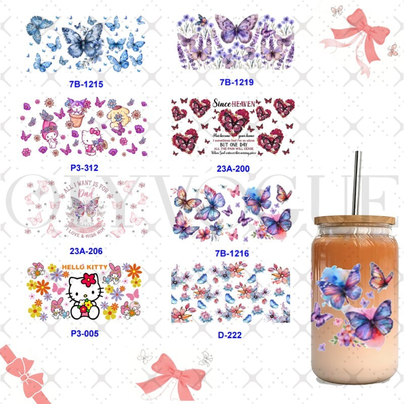 Wholesale 1pcs/5pcs Colorful Butterflies 16oz Cup UV DTF Wraps OLY Exclusive