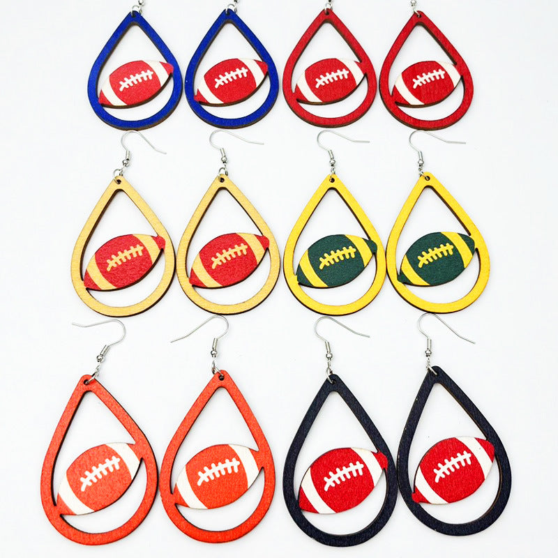 Wholesale 2 Pair/Pack Sports Wooden Football Teardrop Shape Simple Cheerleading Retro Casual Earrings