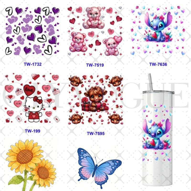 Wholesale 5pcs Valentine's Day Cute Cartoon Roses 20oz Cup UV DTF Wraps OLY Exclusive