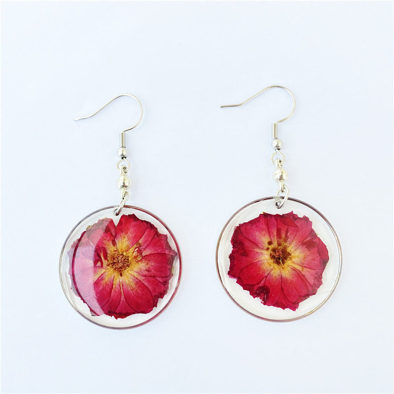 Wholesale 6pcs Real Rose Flowers Simple Natural Real Flower Earrings