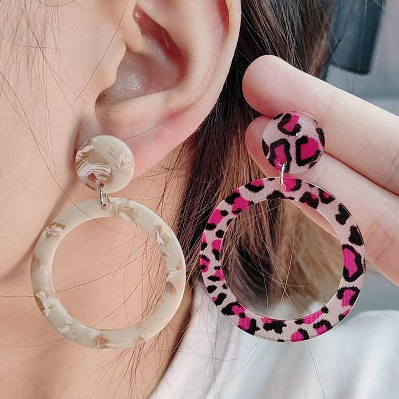 Wholesale Acetate plate colorful hollow round acrylic earrings retro leopard print earrings