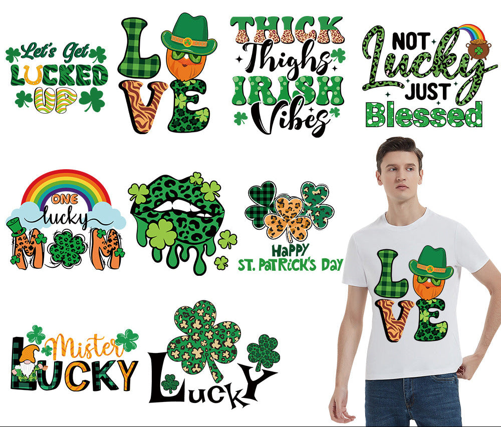 Wholesale 10pcs St. Patrick's Day Green Lucky Clover UV DTF Ready to Press Transfers Wraps
