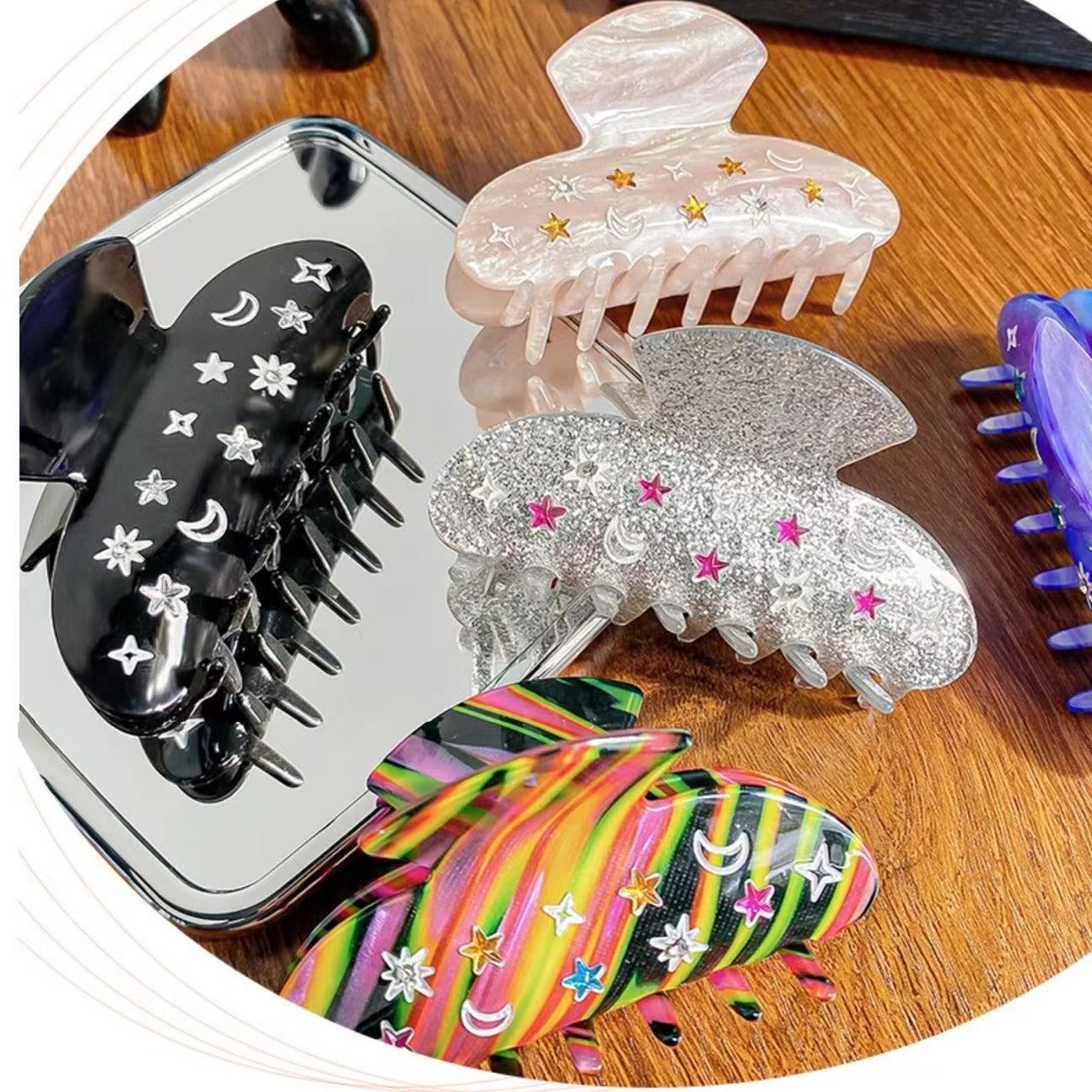 Wholesale Diamond-embedded star moon clip back head updo shark clip light luxury texture Valentine's Day hairpin