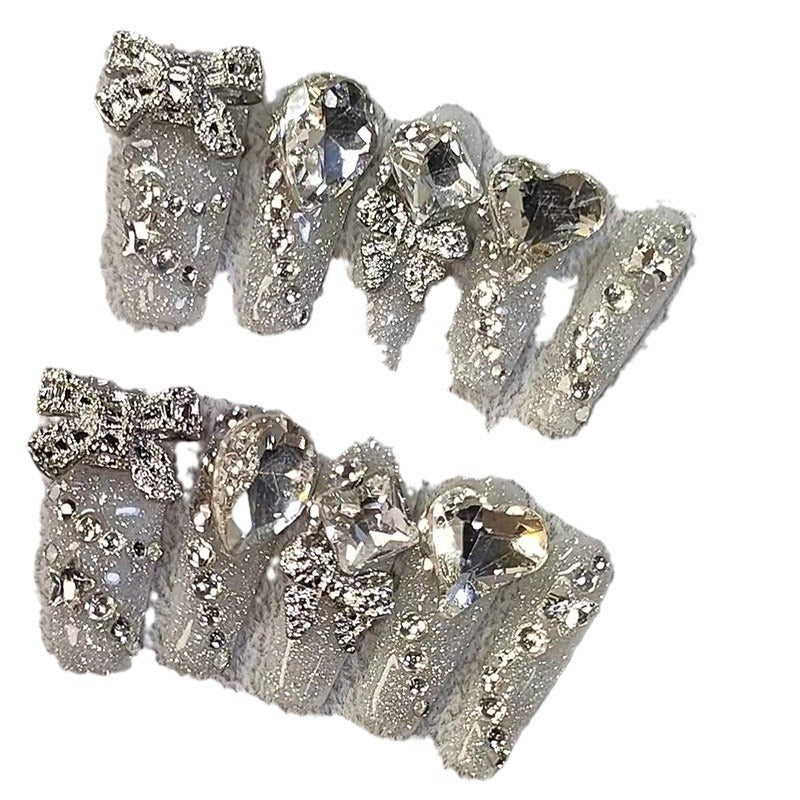 Wholesale Purely handmade full of diamonds pure color glittering long nail art