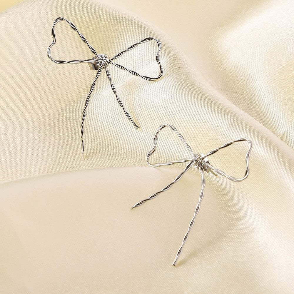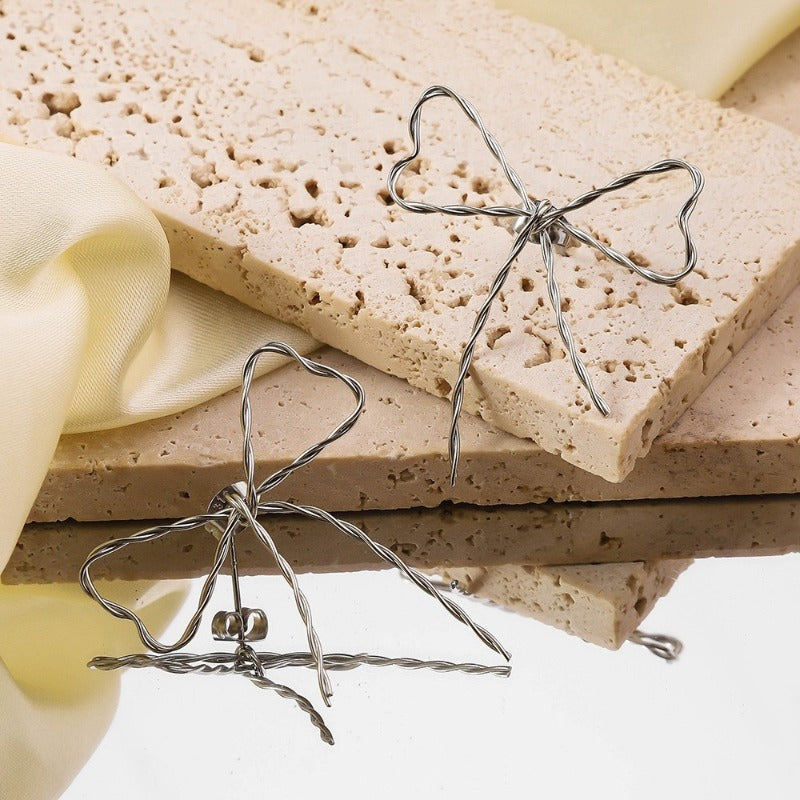 Wholesale Retro Mirror Butterfly Bow Stainless Steel 18k Real Gold Titanium Steel Earrings